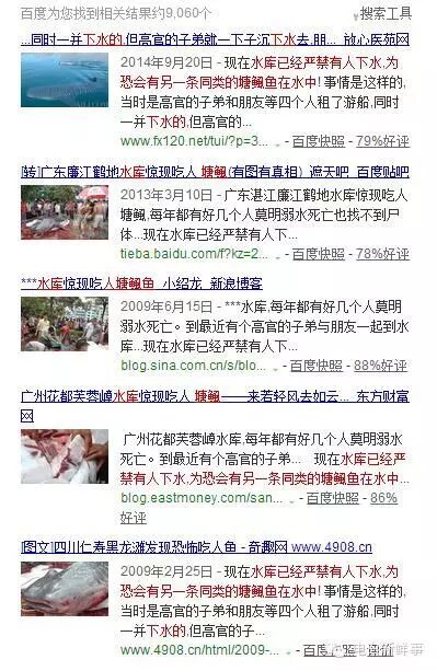 流言: 恐怖!水库惊现吃人塘鲺!每年都有几人莫名溺水死亡,最近有个高官的子弟与朋友一起到水库游水溺死,才发现惊天秘密——竟然是一条有三米多长,头有一米多宽的吃人塘鲺,其肚中竟然有人的骸骨!