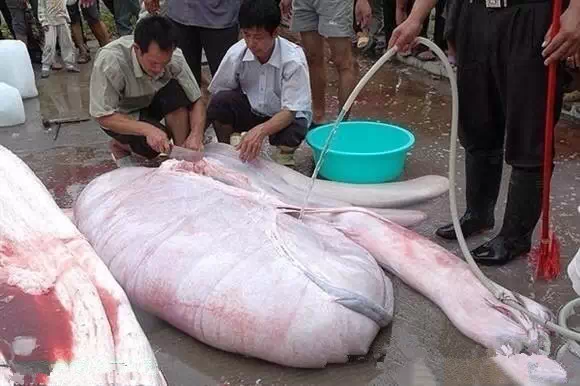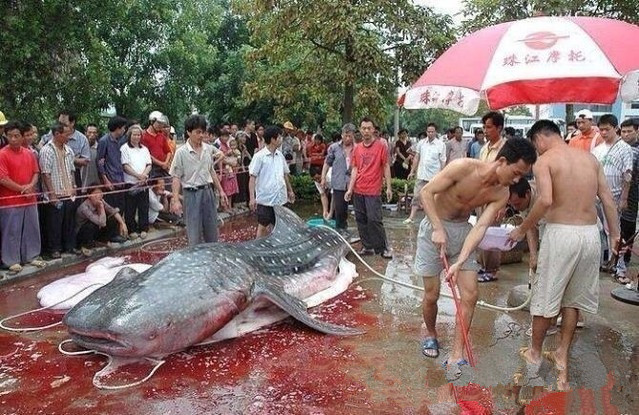 一组鲸鲨解剖现场的图片+钓鱼分子+无知群众=骇人的吃人塘鲺。在自然界中,吃人的塘鲺和吃人的鲸鲨一样,从不存在。如果要说它俩有什么相似的地方,可能是它们都是鱼,都有一个扁扁的头吧。