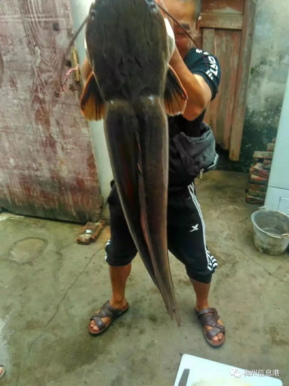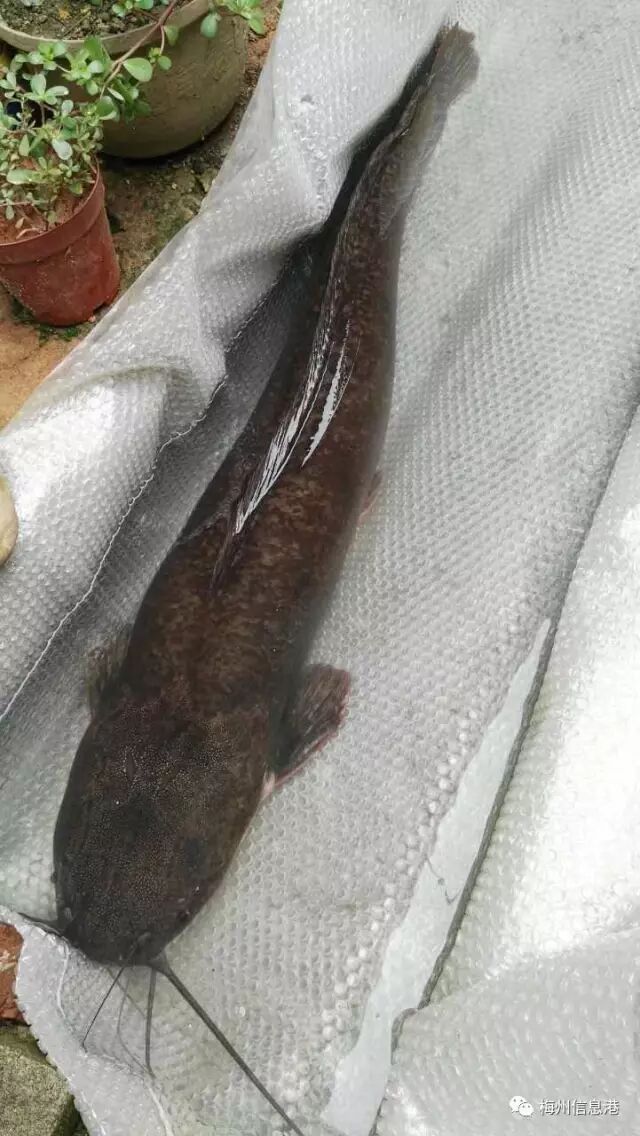 梅城一村民在梅江区三角地一鱼塘,用鸡肝钓到一条超级无敌大滑哥——身长1米3,重达26斤!男子徒手拎起来,滑哥都有人那么高了!滑哥头部比人的脸还要大!