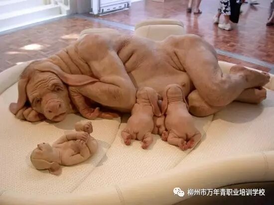 看看这个图片上的大母狗,它还有这么多孩子在吃奶,多温馨的场面啊,可是,你知道吗,你现在看到的这个图片其实只是拍摄的一个雕塑。
