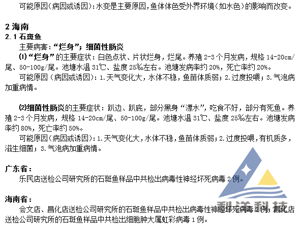 2017年7月份水生动物病害监测报告—海水鱼