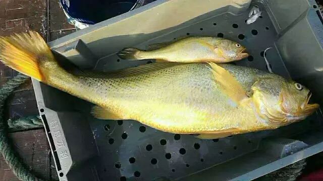 中间是三条大黄鱼,周边是7.15公斤小鱼