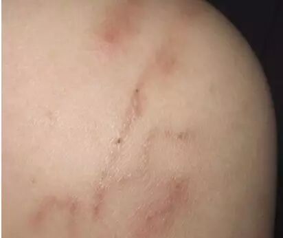这些红色的线条,是虫子在人体皮肤下游走的痕迹。