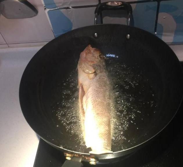 炸到两面金黄色就可以捞出来,鱼的表情为啥看起来有点狰狞!