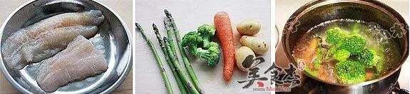 辅料:芦笋5根;西兰花3小朵;胡萝卜1根;