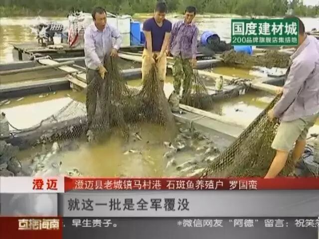 澄迈县老城镇马村社区居民委员会 委员 马传平: 现在养殖的鱼死了90%多了,现在我们统计了是13户,现在我们希望有关部门能够帮助他们贷款,给点补助重新养殖起来。