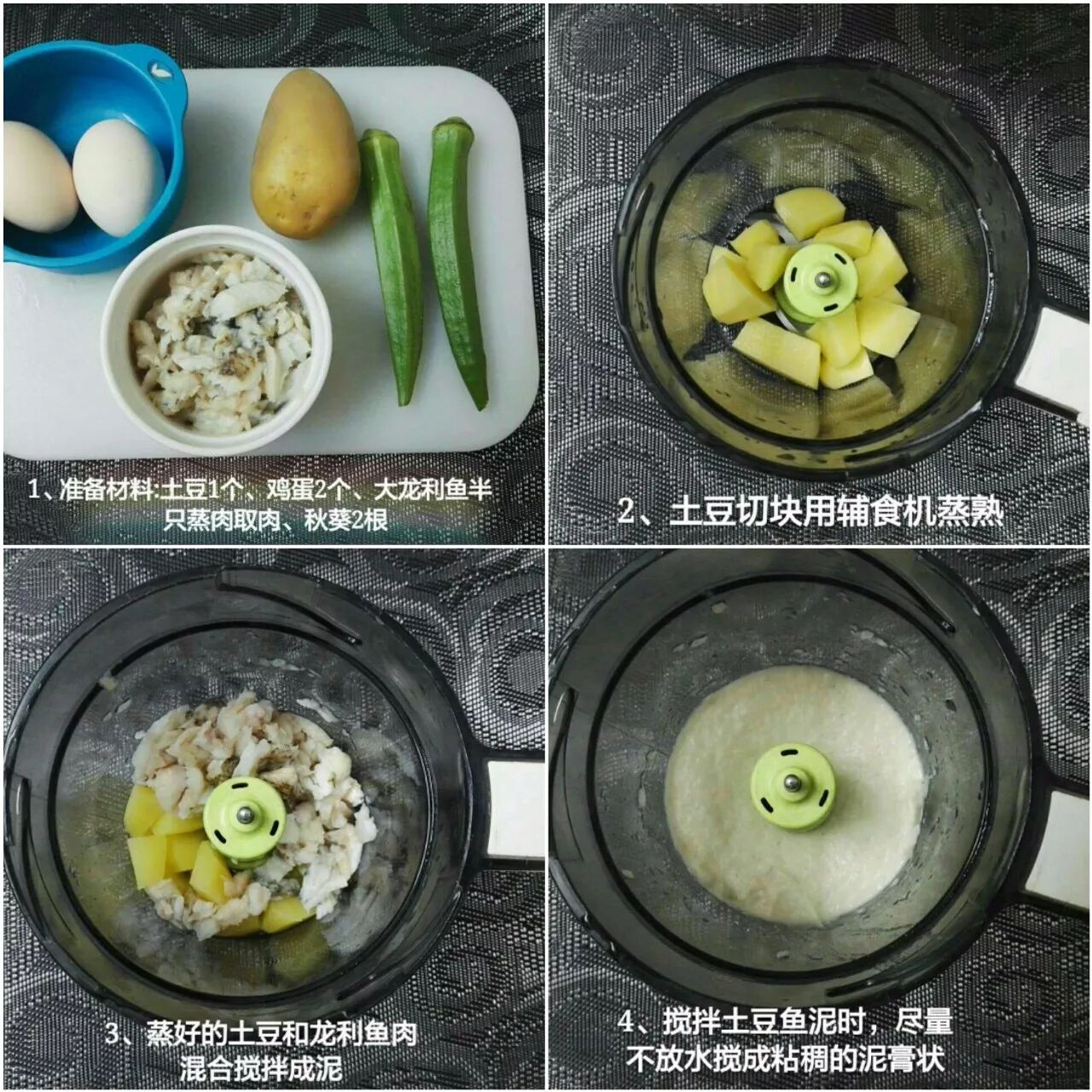1.龙利鱼头取肉,剁成泥