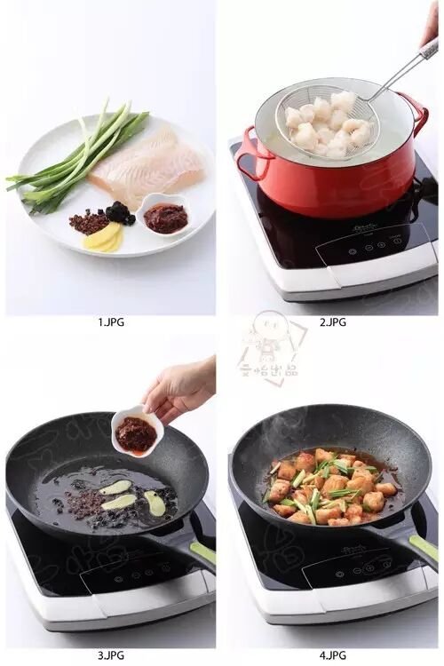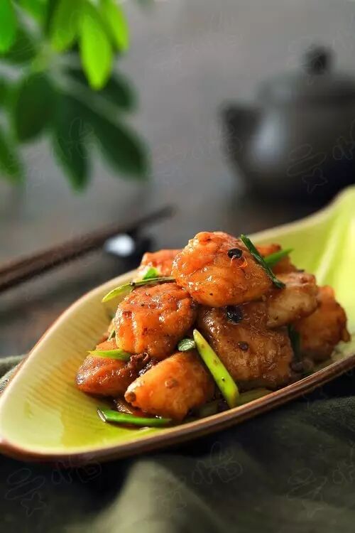 3) 炒锅中倒入油,油温热时放入姜片、花椒、豆豉煸香,加入郫县豆瓣,小火炒出红油后,放入龙利鱼,加入糖,青蒜段,炒匀即可。
