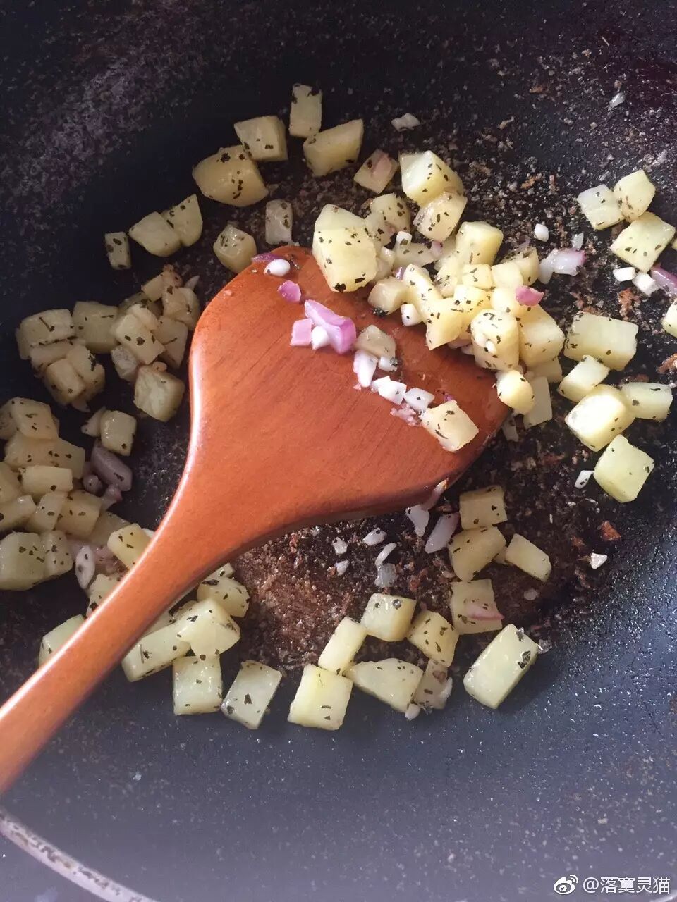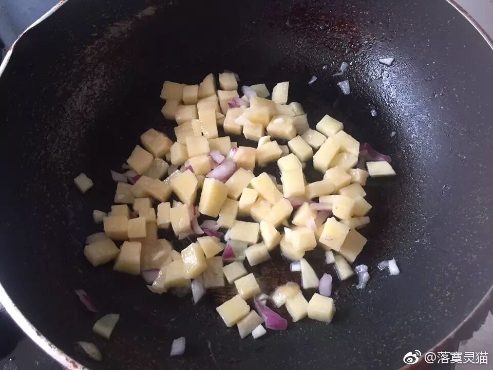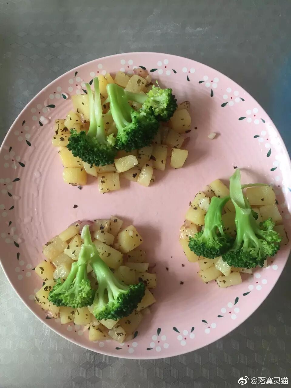 蒜切碎 土豆和洋葱切丁 西兰花切小焯水备用