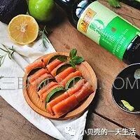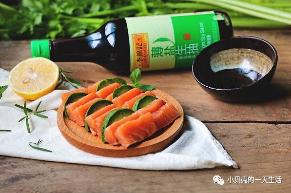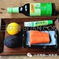 1. 准备好三文鱼、牛油果、柠檬、青芥辣、李锦记薄盐生抽。