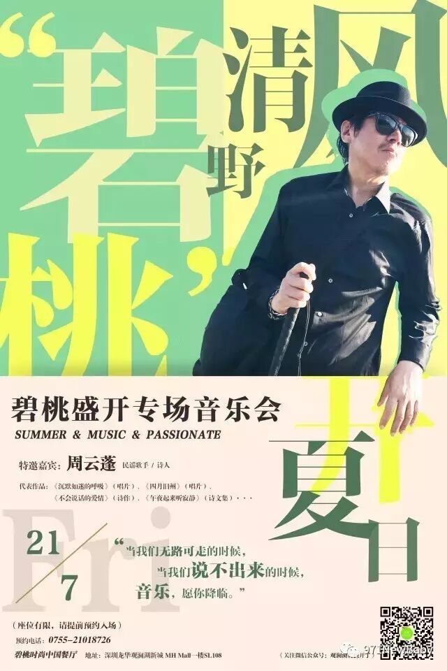 这一次周云蓬带着《午夜起来听寂静》来到观澜湖碧桃,现场演唱,签售。这个周五让我们用音乐触及你心中最柔软的部分!