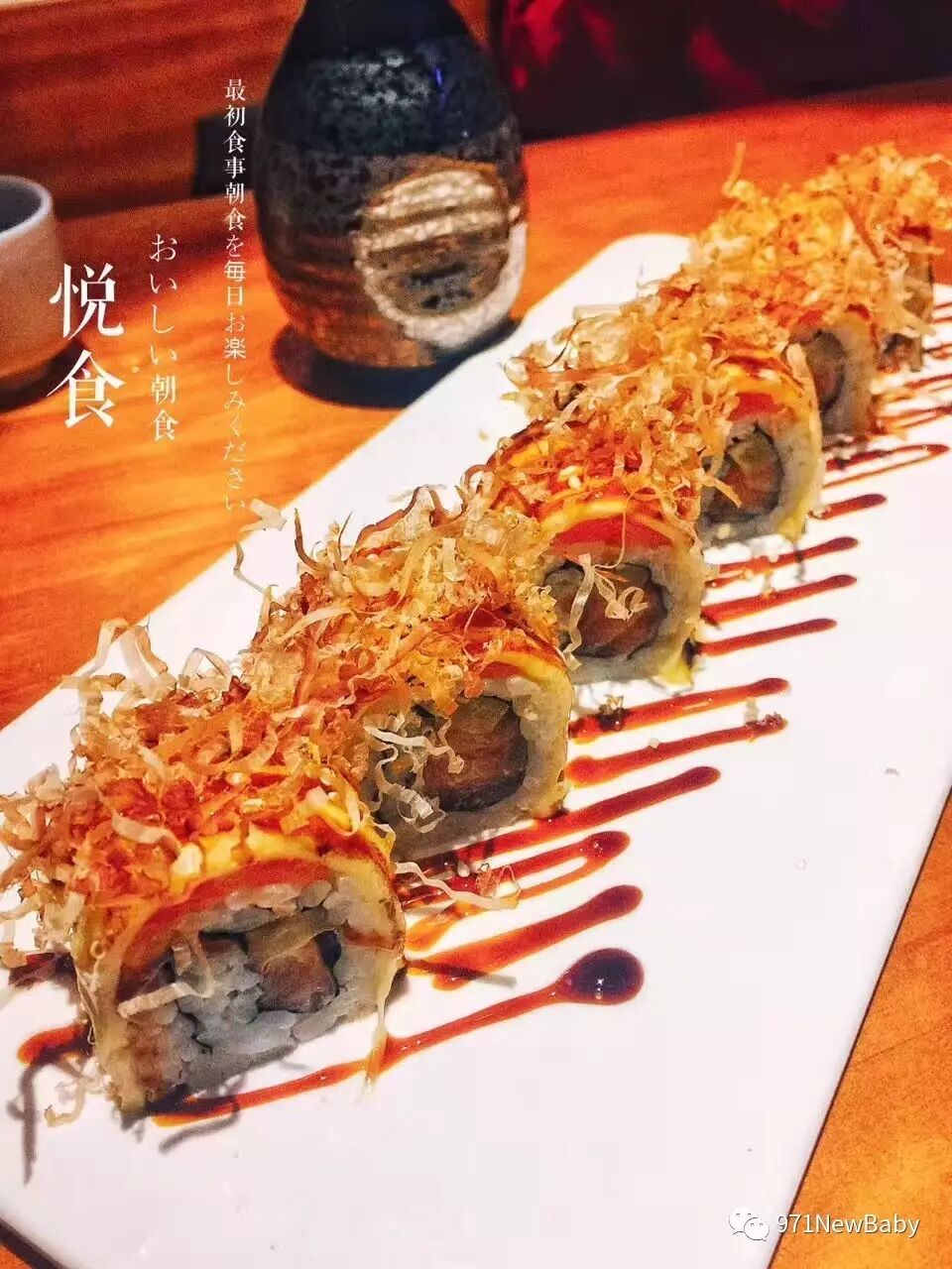 什锦天妇罗、综合寿司拼盘(三文鱼握寿司、金枪鱼握寿司、虎虾握寿司、鲑鱼籽军舰、鲷鱼握寿司)芝士明虾卷、蟹肉沙拉、三文鱼金枪鱼双拼刺身