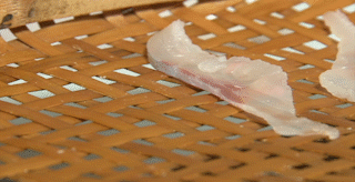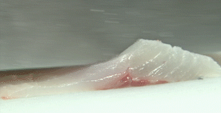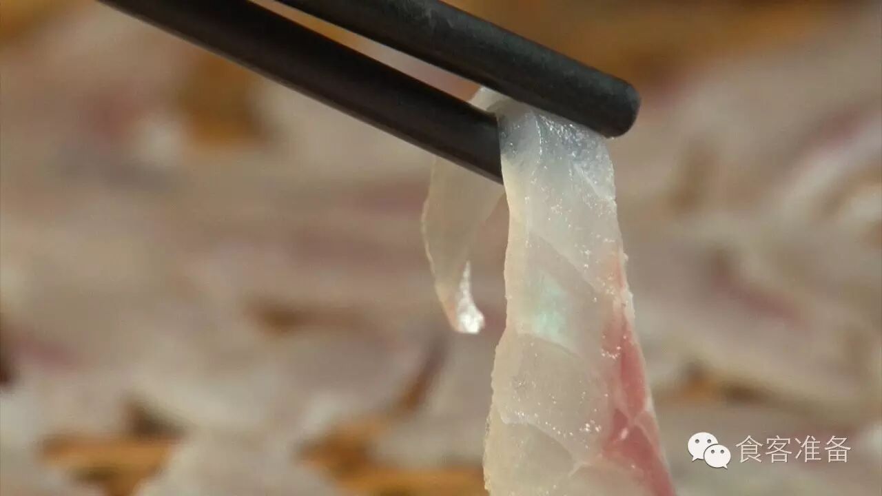 第三感:“干”,鱼肉要吸干水分,刀要干生,讲究一刀成片,干净利落!