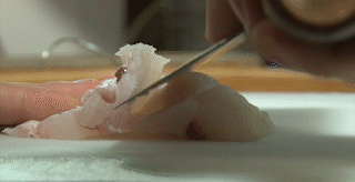 第二感:“快”,鱼经放血、除内脏、扒鱼皮、清洗、除刺、片鱼肉一起不能超15分钟!
