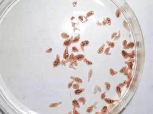 三文鱼作为淡水鱼是不能生吃的。淡水鱼、虾身上寄生着多种寄生虫,生吃会感染人体,由于喜欢吃生鱼片或半生不熟的鱼片,近2%的广东人都感染了华支睾吸虫,是全国平均感染率的5倍。下面是再多芥末都杀不死的肝吸虫的样子: