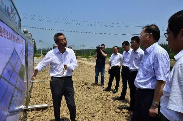 江苏省海洋与渔业局局长汤建鸣(前排右2)等领导调研池塘工业化生态养殖项目