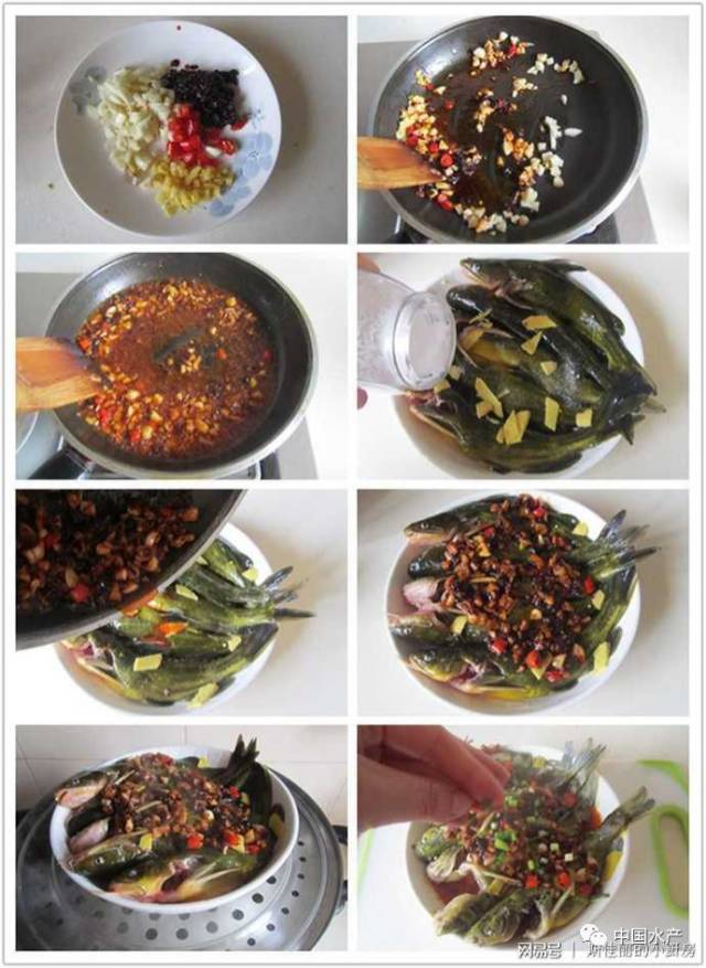 平常我们经常是黄骨鱼买回来用来红烧或是煎着吃都比较香,但是最近迷上了蒸菜,于是今天想试试蒸着它吃。加了点豆豉酱,先将豆豉酱与姜蒜末煸炒出香味,这样炒过的腌制调味料味道会更香;再将它铺满在黄骨鱼表面上,大火蒸上八分钟。豆豉这种重口味的食材跟鱼肉结合,让鲜甜的鱼肉里渗进豆豉的香味,让豆豉的香味进入到鱼肉中间,鱼肉的滑嫩与鲜美,配上红润油亮的豆豉酱,这两种食材间无私地相互付出,味使其入,有味使其出,真的是让人回味无穷的下饭菜。