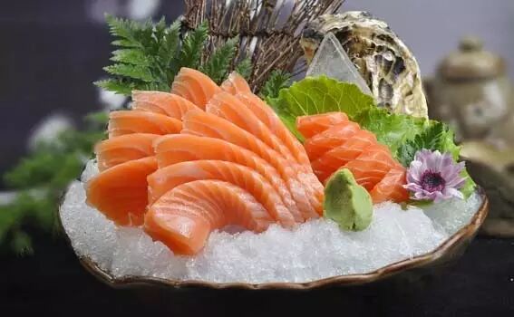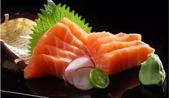 生的三文鱼:色泽鲜明,肉呈橙红色,脂肪纹清晰,肉质坚挺,口味有股特别的浓香。