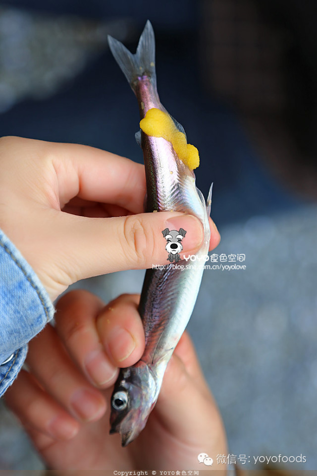 虽然不是多春鱼的产卵季,还是有一些充满了这种黄色的鱼籽。