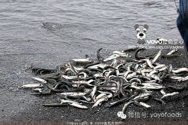 小小多春鱼的脊背泛着蓝绿色幽暗的光。那一刻,我甚至怀疑是不是自己有捕鱼狂想症,看着这一大筒多春鱼,居然很想给倒回海里,重新来玩。