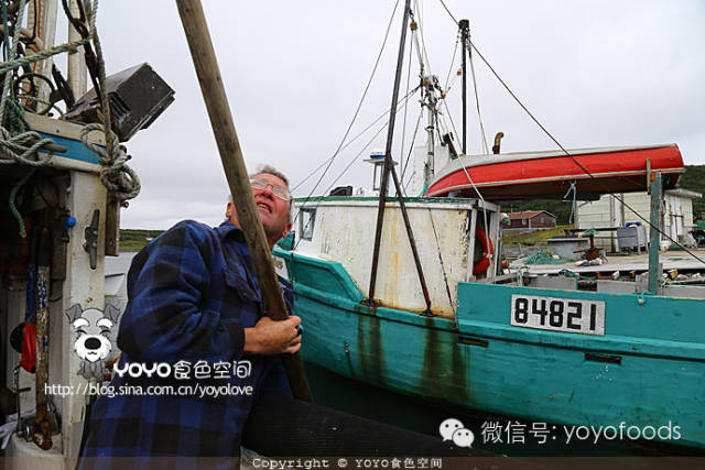 54岁的Carl Hedderson是土生土长的纽芬兰渔民,高大健硕朴实憨厚,脸庞让北大西洋海风吹拂成红彤彤的颜色。前一天晚上我们在Lightkeepers Restaurant附近的海湾,一起吃过古装的纽芬兰维京海盗晚餐,他坐在我旁边的一桌。最后做游戏的环节,他带着我跳了一段欢快的转圈舞。