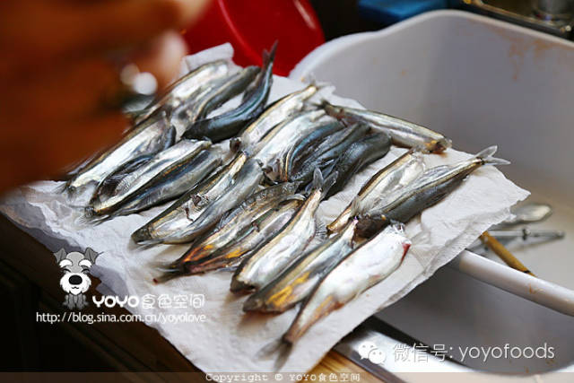 Darrell 把多春鱼洗净,用厨房纸擦干。
