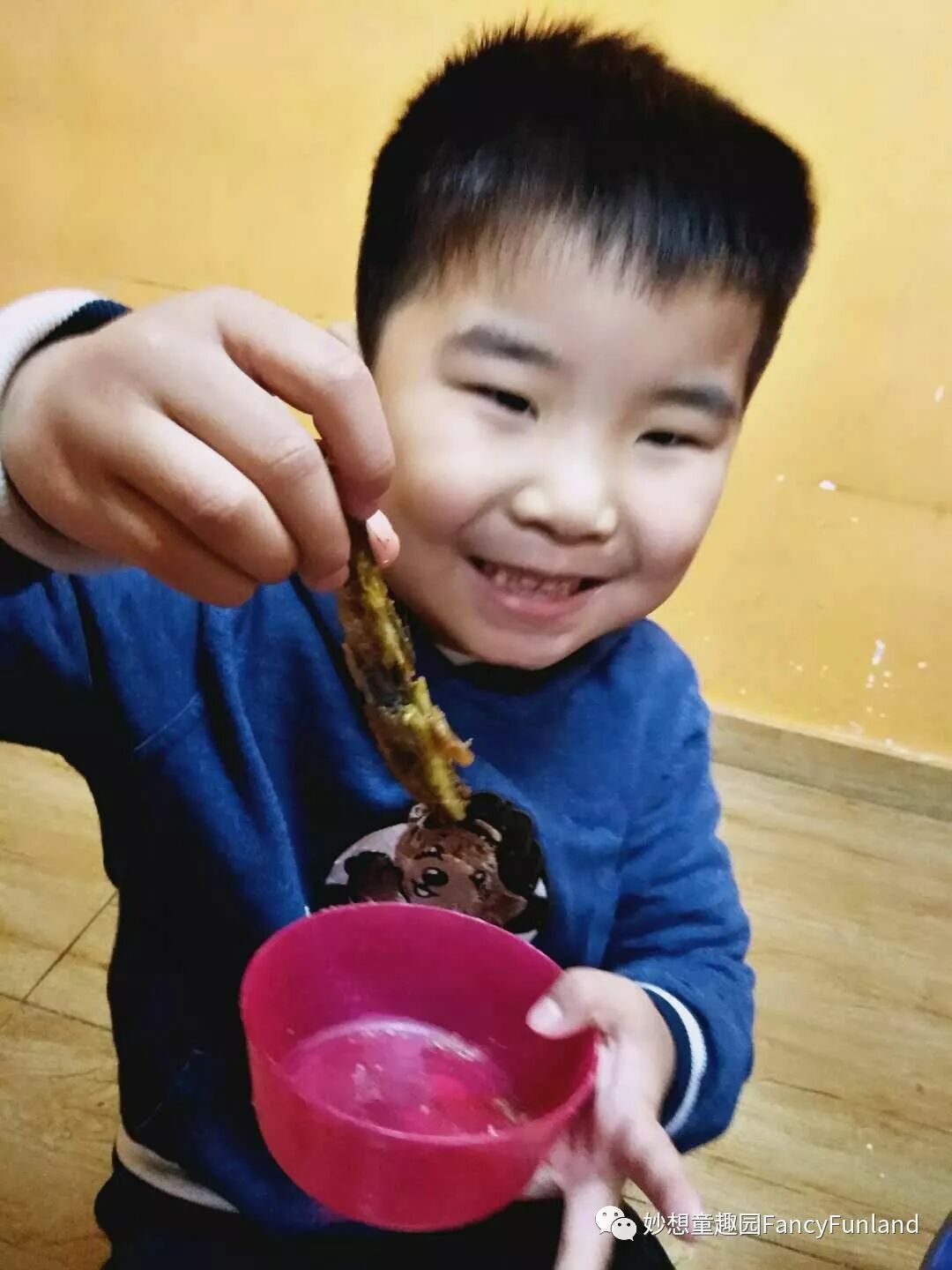 大家都知道是鱼都有刺,所以吃的很小心,老师告诉大家尽管大口嚼吧,不用担心刺。而鱼籽爆浆的感觉就在其中。