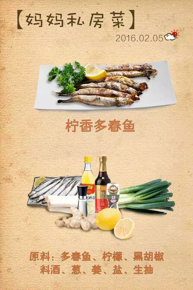 柠香多春鱼是蜜蜜在小年夜美食相亲会上的第二道菜,特意在家让妈妈教着练习了好久。鱼肉肥嫩,表面金黄,鱼骨已经煎酥,配上爽口的柠檬汁,味道十分鲜美!煎好的鱼身带着酥脆,鱼肉的清甜鲜美,特别是当牙齿咬到一整包鱼籽时,细细的鱼籽在你齿间爆裂的快感,美味极了。