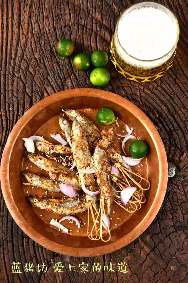 要说夏天什么最火,那一定是大排档。每天的大排档都是人流量爆满,其实蓝蓝也分析过,为啥每年夏天大排档这么火,有一点可能就是营业时间长,大排档基本都是每天下午营业一直到第二天凌晨,这个时间点是最凉快的时候,大家也喜欢在外面吃吃喝喝要说大排档最吸引人的是什么,那肯定是肉!其中又是以海鲜为主。鱼类是点的最多的,不大不小的个头,吃一个,吃一个。一晚上好像怎么也吃不够的样子。不过话说回来,也不能天天吃大排档哇!万一在家想吃了怎么办,没关系,今天就教大家做大排档的人气美食,煎多春鱼。之所以选择多春鱼是因为多春鱼高蛋白,低脂肪,口感特别好,适合作为夏天的下酒菜。但是多春鱼有一点问题就是特别腥,但是这个不重要,因为蓝蓝会教大家如何去腥哒多春鱼8条 葱5g 姜5g 白酒适量 白胡椒适量 洋葱5g 辣椒粉适量2.放入葱姜,白酒腌制十五分钟,然后将葱姜去掉,鱼的表面擦干净后用竹签子串起来3.锅内放少量食用油,放入串好的多春鱼,放上两片洋葱片用来提味蓝猪坊,一个集健康美味、有机生活为一体的美食工作室;是抒写美食与爱、诠释生活态度的地方,更是大家相互学习交流,体验分享的平台。