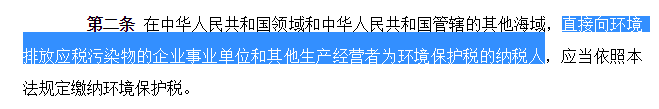 ,应当依照本法规定缴纳环境保护税”。这就有三个关键点:一是直接排放;二是应税污染物;三是企业事业单位和其他生产经营者。