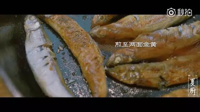 热锅冷油,将多春鱼下锅煎至两面金黄