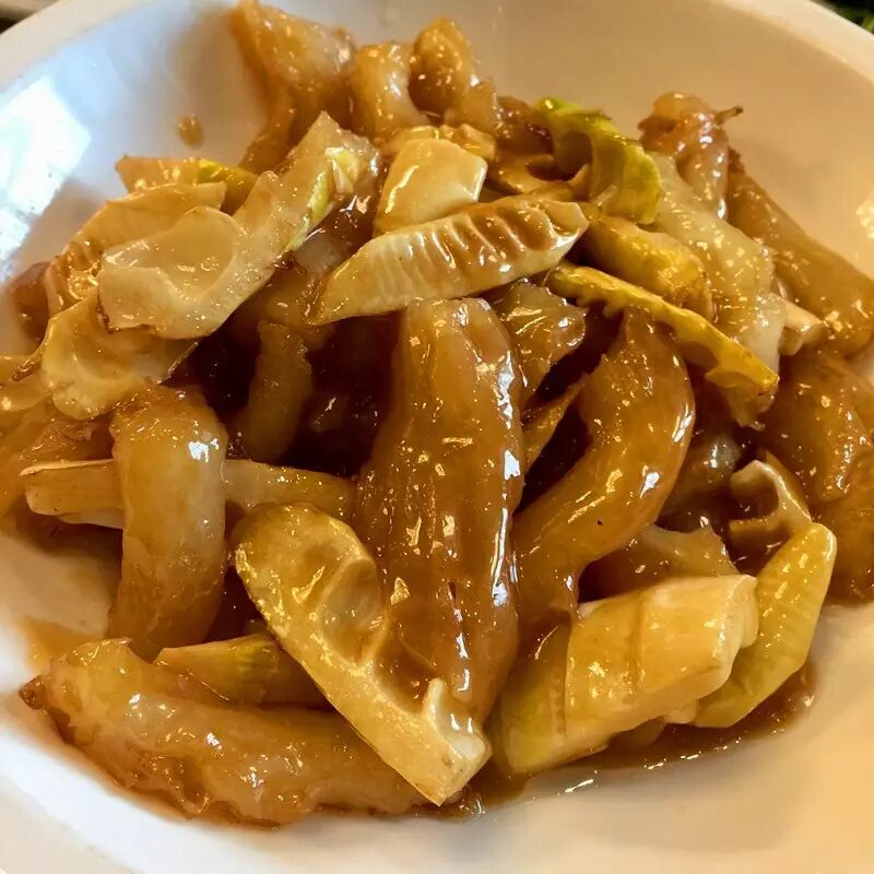 苏州馆子的蹄筋都做得好,发得合适、炒得恰当,冬天是配冬笋、春天了就配春笋