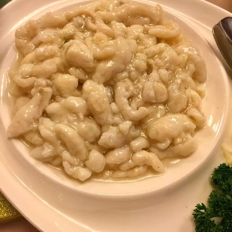重点还是这道糟溜塘片,油菜花开时塘鳢鱼最肥美,吃到菜花塘鳢鱼相当于在对的时间遇到对的人。各位可以比较下,春天的塘鳢片和初夏、冬季的塘鳢片看起来有什么不同。多吃点,错过当季就是错过一年