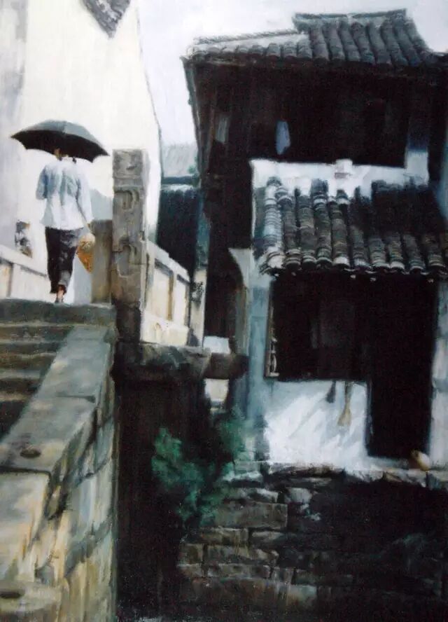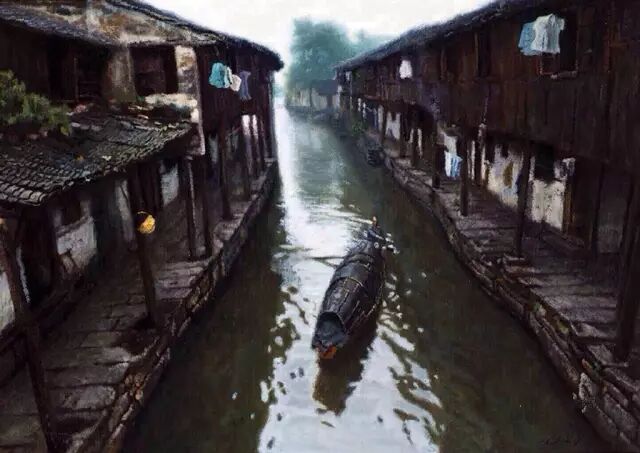 我出生江南水乡,嘉定这个古镇,本是出门不远便是桥,到处粉墙黛瓦的。日夜都有捣衣声飘过瓦楞,便传进窗户里来了。儿时跟着端着洗衣盆的姐姐一级级走下河边水桥,光照水波粼粼映在临河的粉墙上,小鱼就在石缝边喜滋滋地游来游去。乌篷船时不时会从桥洞里探出头摇过来,晶亮晶亮的水波就溢到了水石上。
