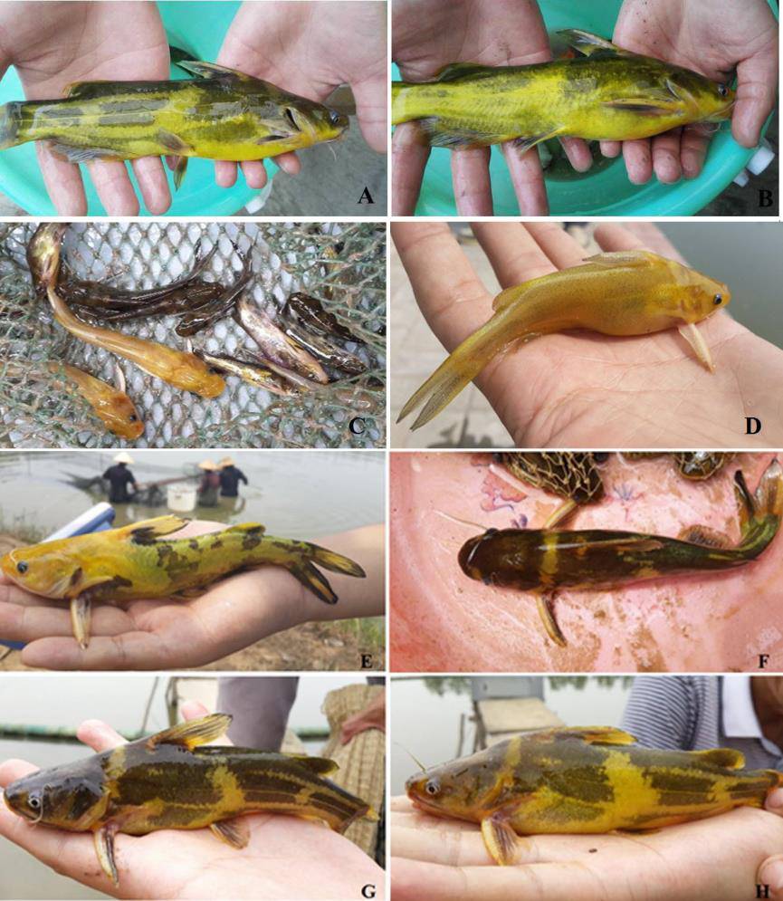黄颡鱼体色组成基本为两种色调规律搭配组成,体色组成包括:黑色素细胞、黄色素。
