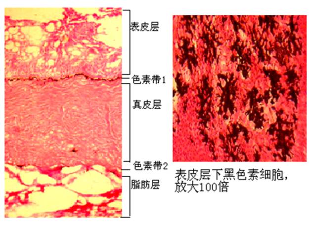 从沉积的量来看,黑色素细胞在黑色素带1含量最多,其次是在黑色素带2