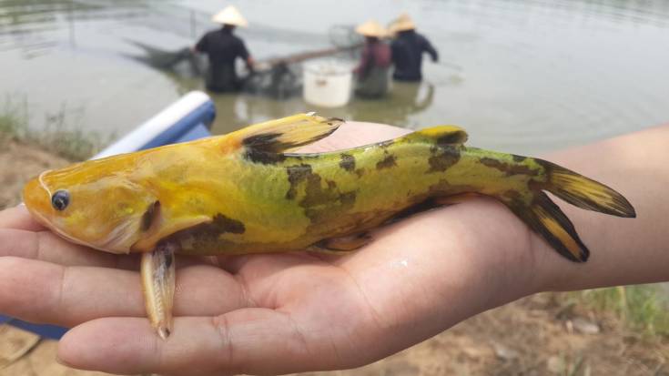 ▲图2 另一例黄颡鱼体色修复后个别体色变“花”黄颡鱼