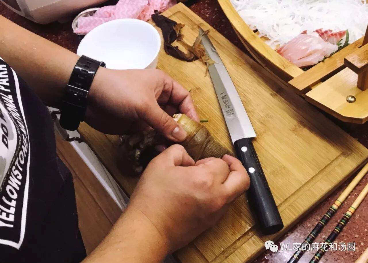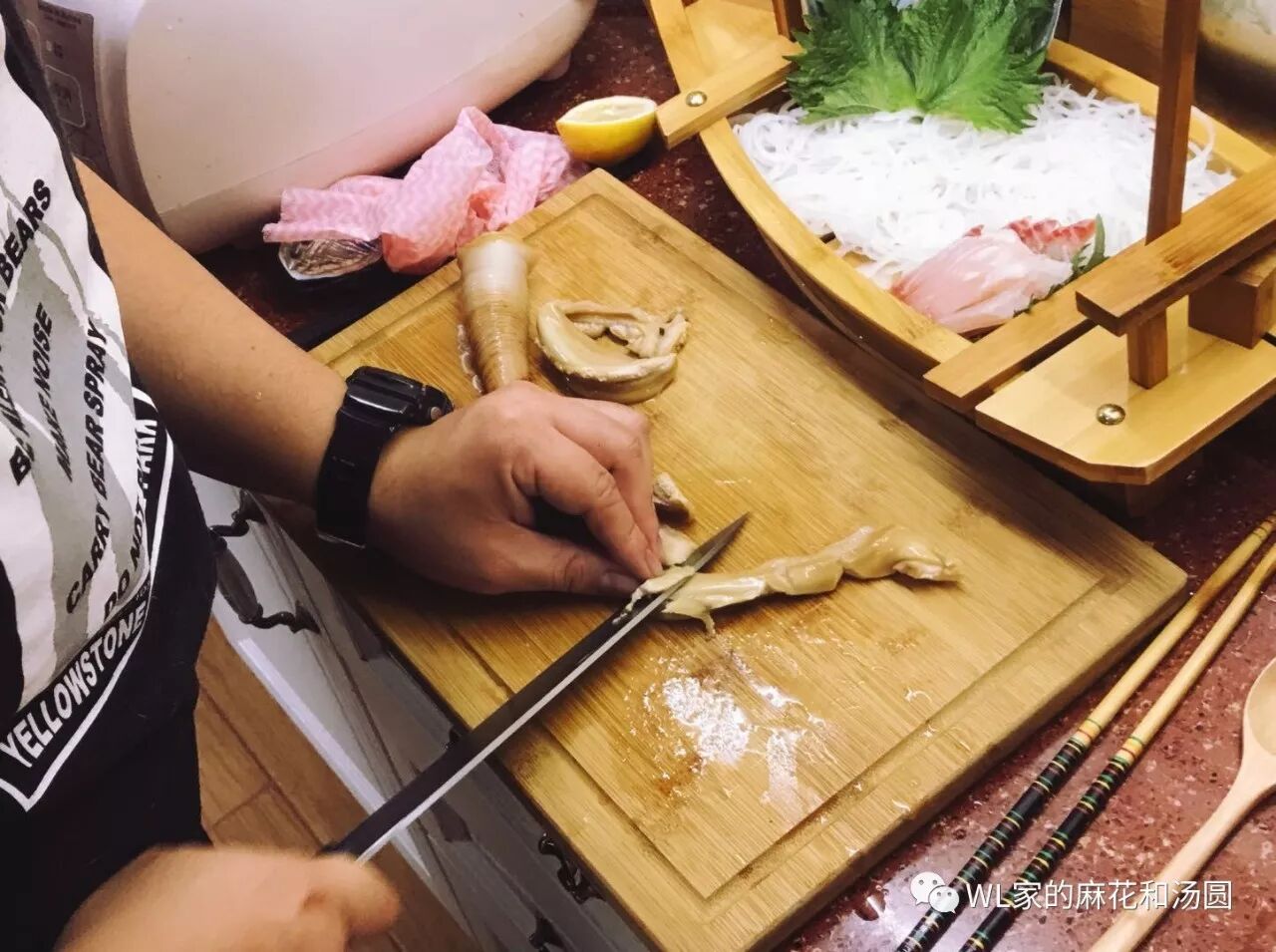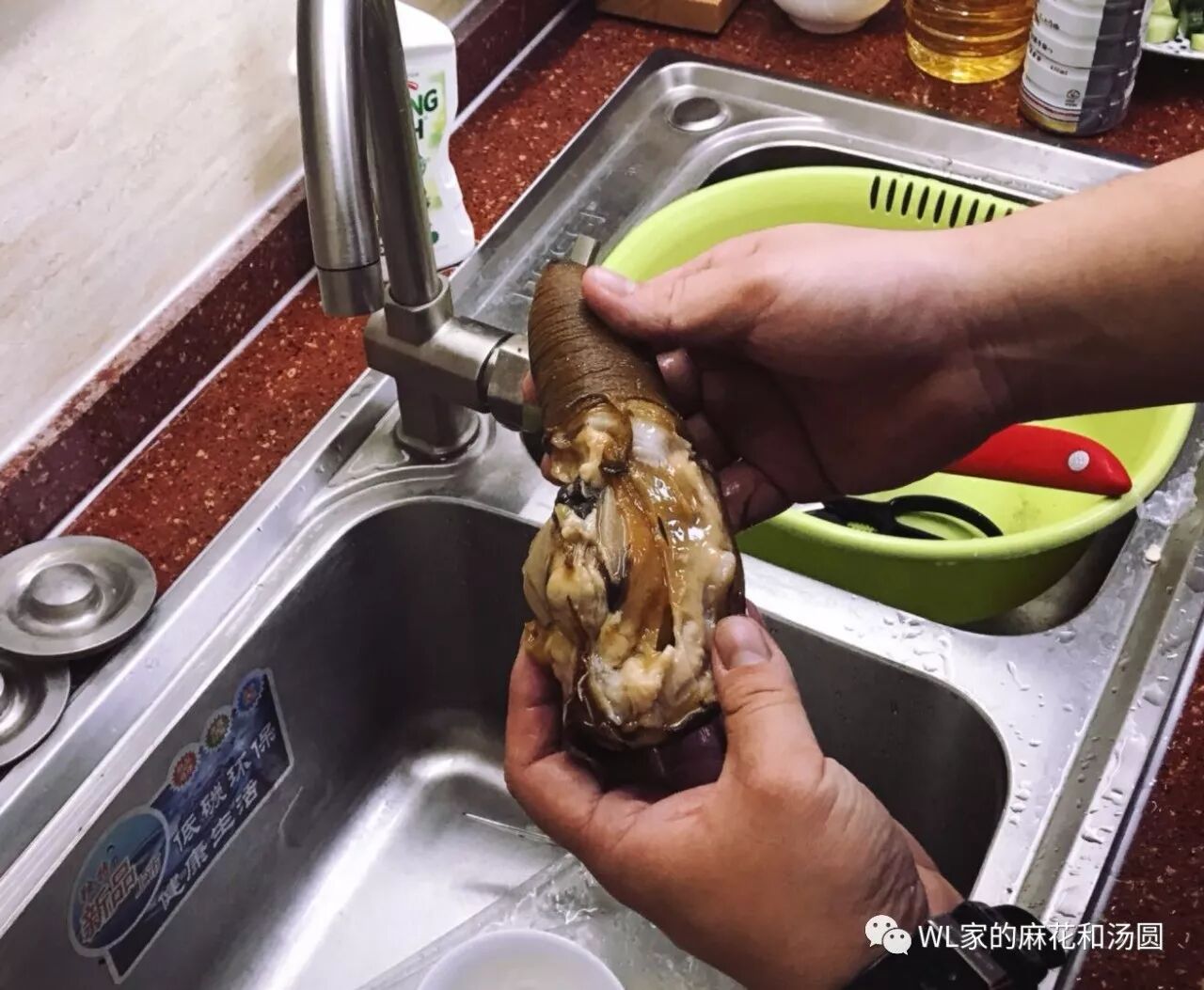 第一步一定要将象拔和贝身下热开水过一下,就几秒就可以。