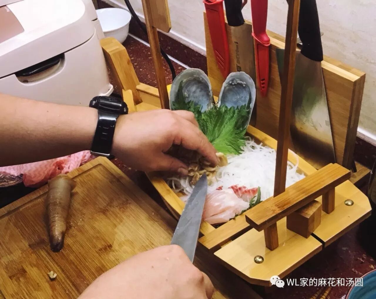 贝壳两端都有闭壳肌,在开壳时注意用餐刀慢慢剥离。然后我们来看看上图中可以吃的位置。虹管也就是象拔是可以吃的,虹管后面的蚌身位置也没有问题。但是内脏也就是圆圆的地方是不可以生吃的!这个地方煮粥喝可以鲜掉眉毛!