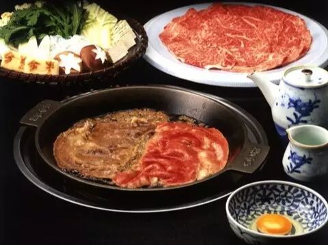 早期寿喜烧的主料是鸡肉,因而称鸡素烧,明治维新之后才渐渐流行牛肉。与寿喜“锅”不同,寿喜“烧”要先把牛油均匀涂在浅口锅底,然后烤牛肉片,待肉微熟后撒上白糖,等白糖渗入肉汁中再浇酱油和味啉,或是柴鱼高汤,最后搭配蔬菜豆腐菌菇稍微焖煮。寿喜烧的蘸料是新鲜的生蛋液,鸡蛋只需搅拌“九又二分之一”下即可食用,这样才好最大限度地保持蛋清的粘稠口感。