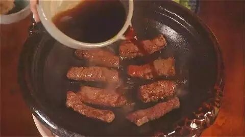 (先烤肉再煮汤,汤汁浅薄的叫寿喜烧)