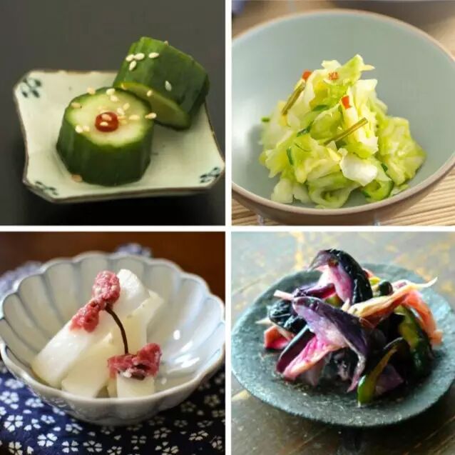 腌渍咸素菜:也就是中文概念里的咸菜/酱菜/泡菜,但地位要比我们印象中的高很多,既可充当宴席上的下酒小菜,也可作为套餐定食中的开胃前菜,是日本料理中不可缺少的菜色。日本人首创“糠渍”腌法,即用米糠腌制酱菜,成品清甜又保留着蔬菜本味,自然甘香,下饭可口。