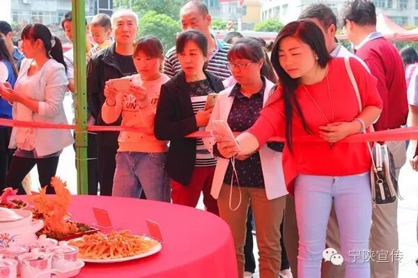 美食吸引观众拿出手机纷纷拍照