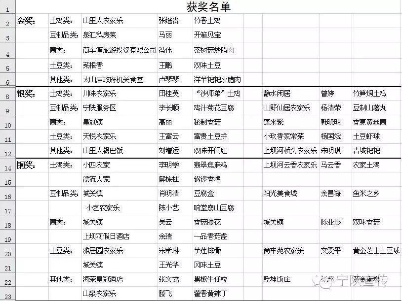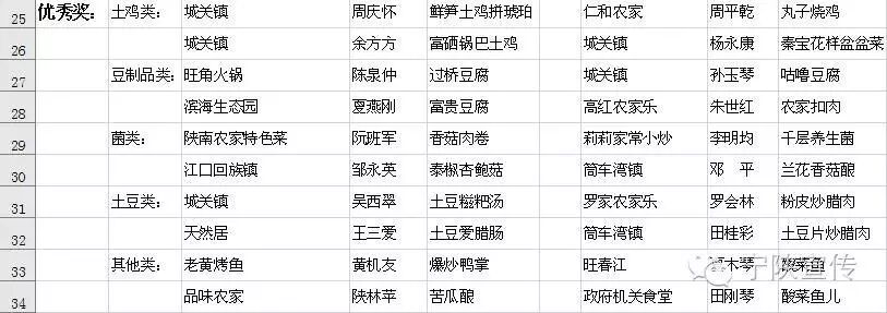 经过近4个小时的比拼,50道宁陕地方特色菜肴经过评委的品尝鉴定,最终“竹香土鸡”、“开箱见宝”、“茶树菇炒腊肉”“双味土豆”“洋芋粑粑炒腊肉”等五道菜肴荣获一等奖,“沙师弟土鸡”、“秘制香菇”等10道菜肴荣获二等奖,“翡翠焦麻鸡”等15道菜肴荣获三等奖。