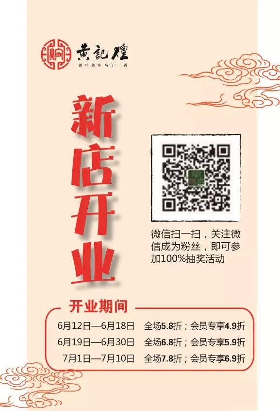 黄记煌三汁焖锅新亚店将于6月12日盛大开业,成为会员即可在体验美味的同时享受开业价4.9折优惠哦!![]()