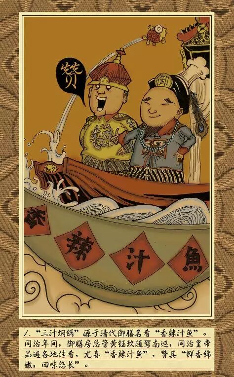 【三汁焖锅】源于清代御膳名肴香辣汁鱼。同治年间,清皇帝称其“鲜香绵嫩,回味悠长”,是当时皇帝宴请百官的一道名菜。黄氏先人将此佳肴传承后世,经黄氏后人黄耕先生的创新研制,即有了现代时尚的黄记煌三汁焖锅。