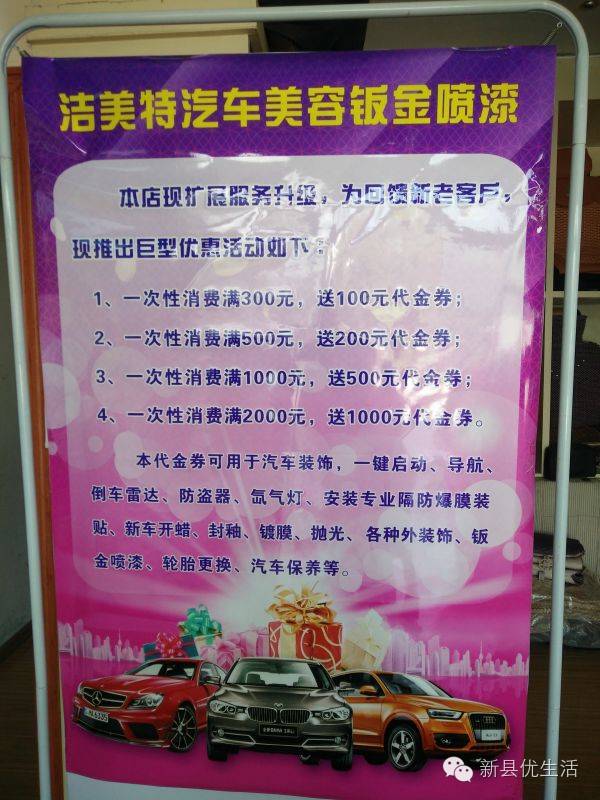 钣金喷漆、抛光打蜡、封釉、镀膜、汽车挂饰五折,持会员卡贴隔热防爆膜、办洗车卡可享受8折优惠![]()