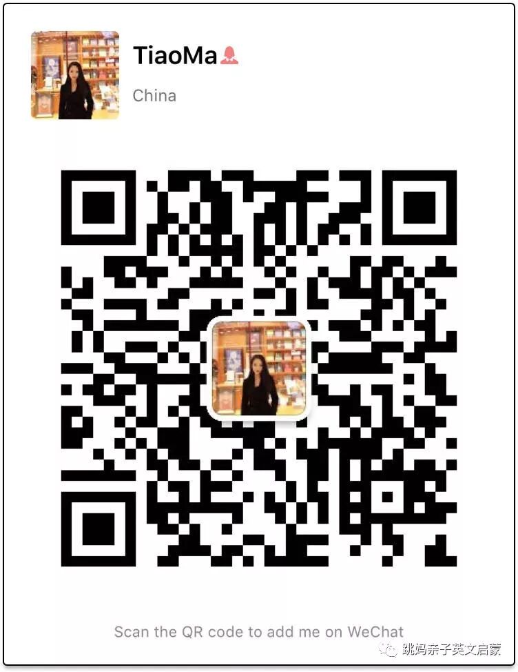 跳妈亲子英语教读群(扫下方二维码加跳妈微信),聚集了一群热爱英语启蒙的英语专业宝爸宝妈们,致力于推广家庭亲子英语启蒙,希望尽自己的绵薄之力,帮助深受哑巴英语困扰的爸爸妈妈们,学习绘本、童谣、儿歌,从而开展真正意义上的英语亲子共读。全天不定时纠音哦!