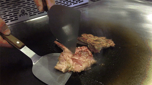生羊排直接开煎,随着铁板的滋滋声,羊肉的香气嗖的一下就蹿上来,如果不是怕倒饱,吃上三份妥妥回本;