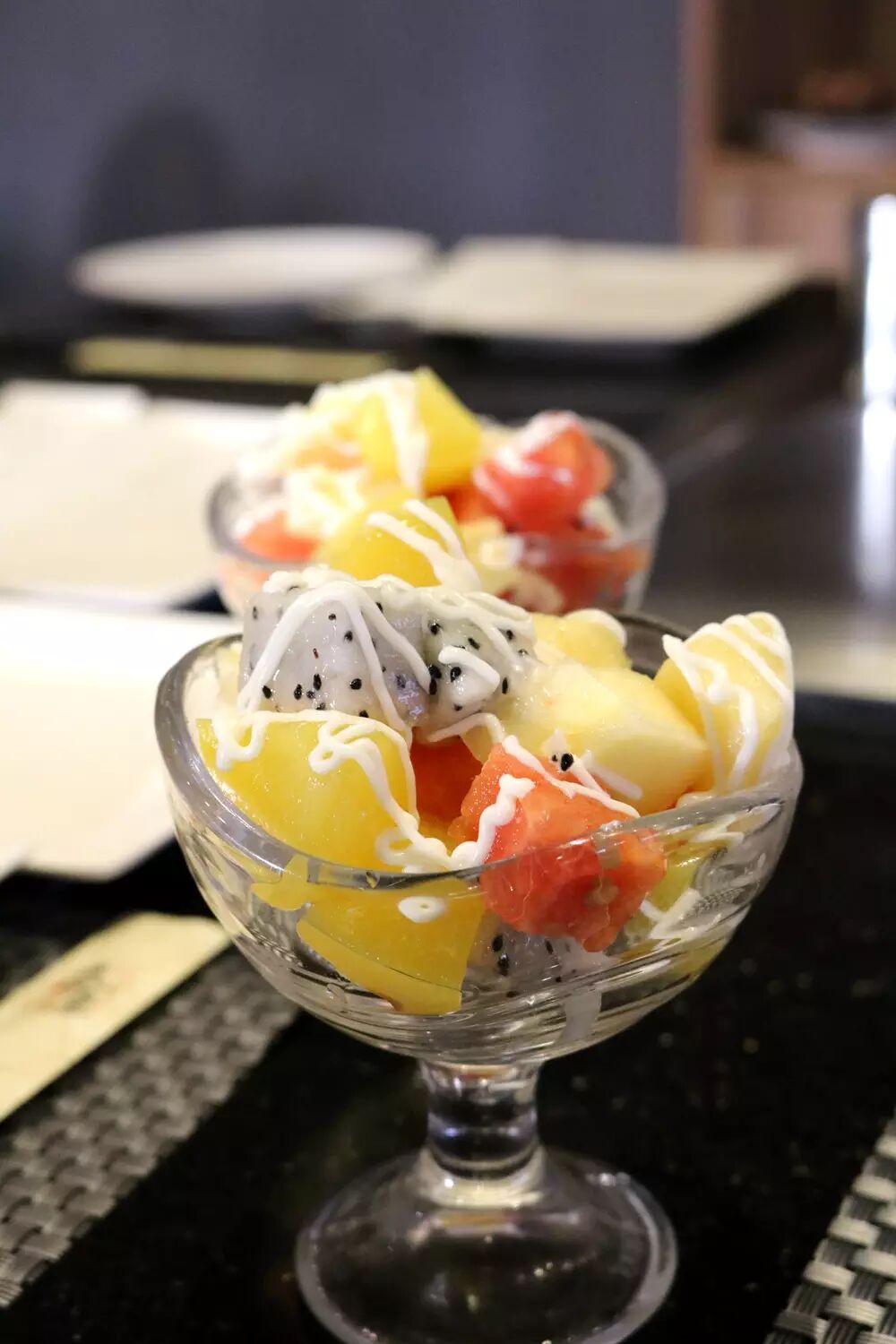 对,对,还有果盘,当季水果轮着翻儿的上,胃里还有缝儿的可以继续;是不是已经迫不及待了?![]()